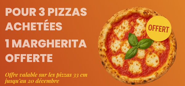 Offre valable sur les pizzas 33 cm jusqu’au 20 décembre